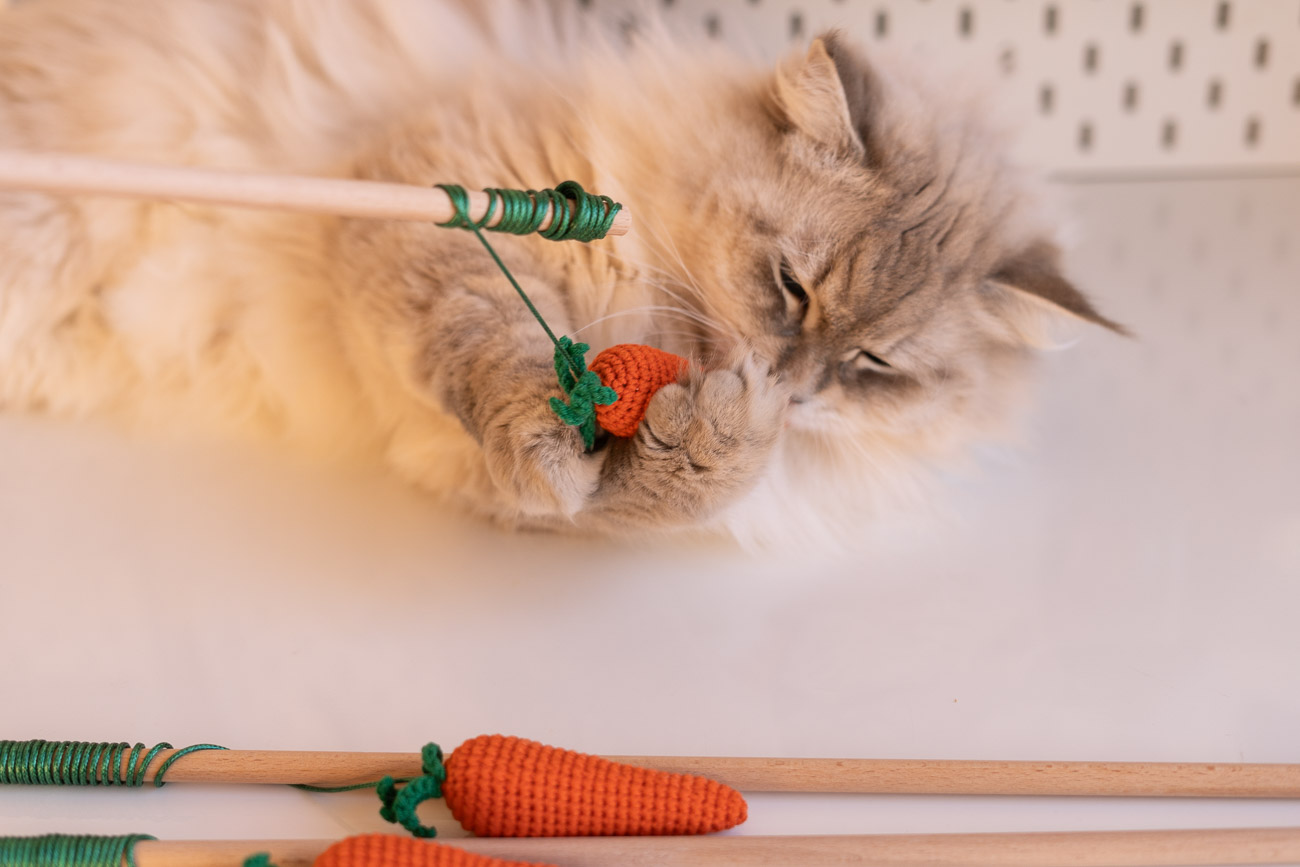Metoda kija czy marchewki? Teraz nie musisz wybierać, bo badania (na grupie dwóch kotów :p) pokazują, że Wędka dla kota Marchewka sprawdza się w zabawie najlepiej 😉